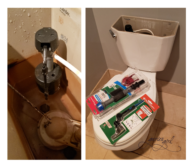 I feel like this item could be on many household to do lists. We all have them in our homes and we all run into problems with them from time to time. In our case, the toilet in our half bath was wobbly and the tank took forever to fill with water. The inside parts looked worn so we decided to go ahead and replace them. Our Home Depot shopping list also included a new wax seal (we just assumed it would be the fix for the wobbly toilet).