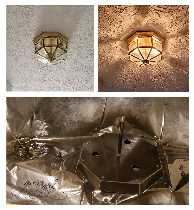 Do you have a bronze or gold colored light fixture in your house? You know you can paint that, right? Sometimes replacing a light fixture just isn’t in the budget. In my case, I also didn’t have an idea what type of fixture I would put up in its place. So the easiest solution I could come up with, was to simply spray paint it black for now.