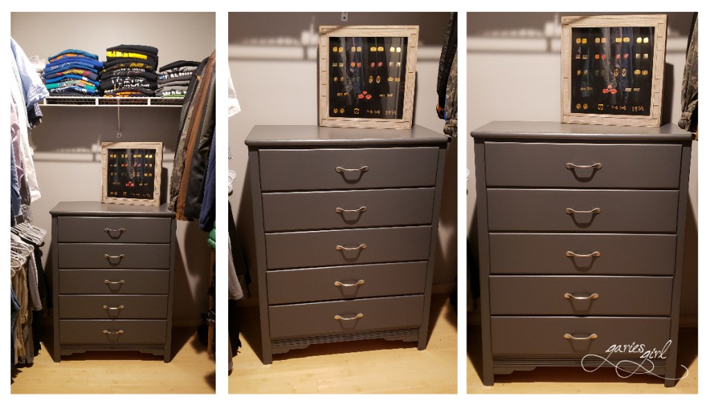 The dresser in Pieter’s closet is a perfect example. It wasn’t pretty and didn’t fit in with any of our other furniture, but it still had a purpose. And just because it didn’t live in the main areas of our house, didn’t mean what it looked like didn’t matter. Giving it a makeover wasn’t going to change the way it functions, but it will surely change the attitude of the person seeing it every day.