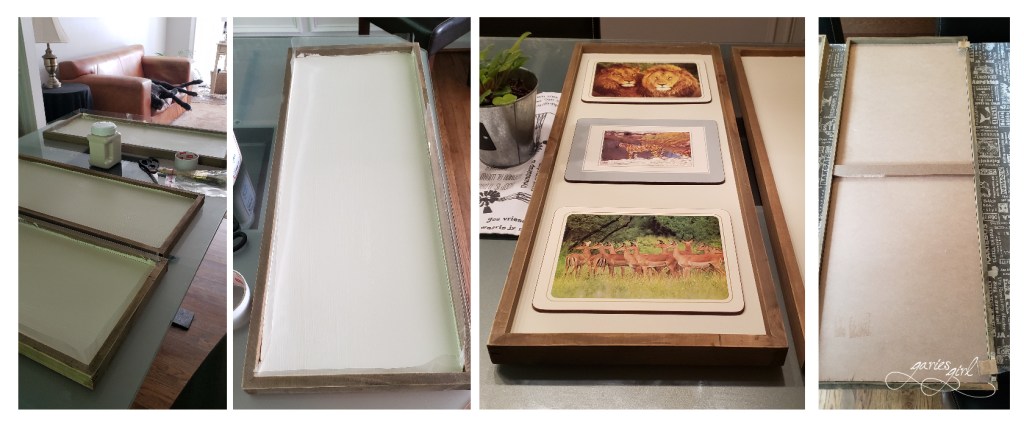 Back to Hobby Lobby I went with new measurements in hand. And again I ended up disappointed. The tall skinny frames I noticed originally just didn’t have the right dimensions. They were too narrow and too tall. These were also just frames – I would still need to add some type of backing to fit the placemats to.