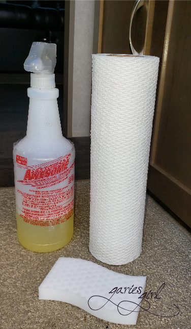 As with a lot of our projects lately, they seem totally overwhelming at the beginning. The only way I know how to tackle these daunting projects, is to break it down into smaller projects and focus on a little bit at a time. In this case, it meant section by section. I would start a cleaning session with one large area in mind, and focus on just cleaning that area start to finish. I started with the back of the RV the first evening, and focused on getting that completed. The second evening, I tackled part of the one side, and so on.