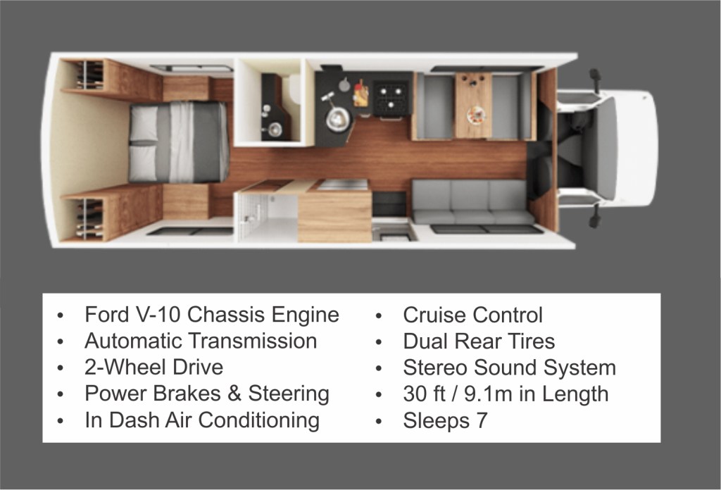 We rented a 30 foot long drivable RV that can sleep 7 people. It was just going to be the 4 of us, but we will have some elbow room for when we needed to stay inside.