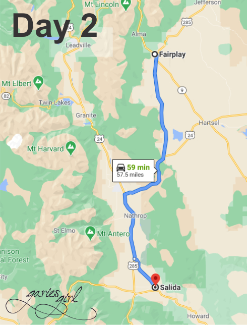 Day 2: Fairplay, CO to Salida, CO – 58 miles