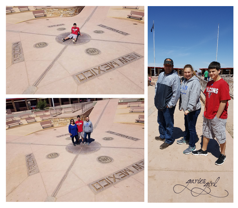 Soon we were back on the road and heading towards the Four Corners Monument. This is the spot where four states meet. Colorado, New Mexico, Arizona and Utah. It is a popular tourist destination, even though it isn’t close to any towns. We had to wait in line a bit to take our pictures right at the center of the monument, but it was nice to be around people again. Local Navajo and Ute artisans sell souvenirs and food on the outside boundaries of the monument and we walked around for a while taking in all the sights.