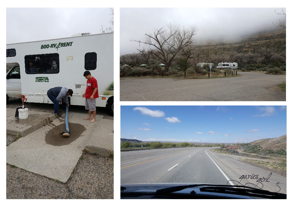 It was a cloudy and grey morning and we wanted to get on the road early. After a quick breakfast, we left our site to make a quick stop at the camp’s dumping station. By now Pieter and Simon were very comfortable with this unpleasant housekeeping task and got it done in record time. The clouds cleared very early and we were able to take in the New Mexico scenery. It reminded me a lot of Garies, where I grew up. Mostly brown with low, green-brown bushes. You could see for miles especially since there are no big trees blocking your view.
