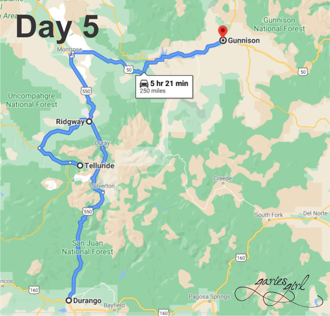 Day 5: Durango, CO to Gunnison, CO – 250 miles