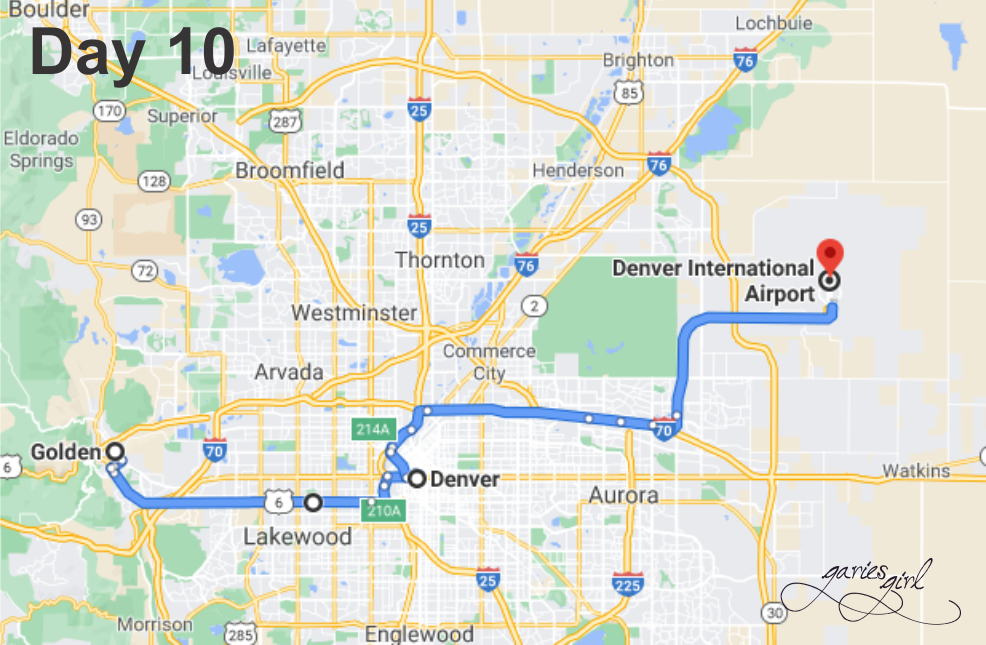 Day 10: Golden, CO to the Airport: 52 miles