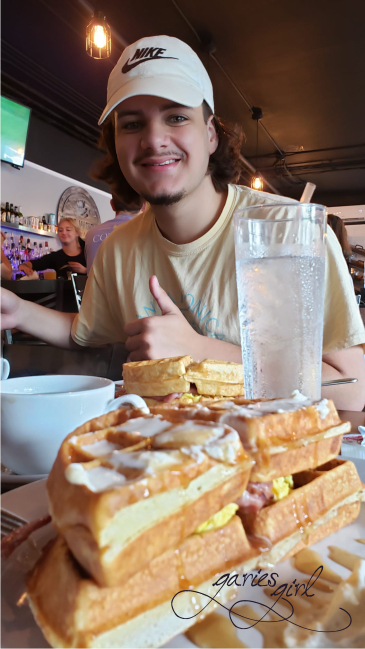 You can’t move in on an empty stomach, so after a lazy morning in our hotel room, we headed out for a late breakfast/lunch. It was my turn to pick, and we headed into town and to the Sugar Magnolia Bakery & Cafe. A hidden gem in my opinion. Simon and Pieter each ordered Breakfast Waffle Sandwiches – a sandwich made with a thick waffle, filled with bacon, ham & scrambled eggs. With whipped cream and syrup on the side, of course. The mimosas looked good, but I stuck with coffee and an English Muffin with Eggs on the side. If you are ever in the area, go check them out! I will definitely stop by again and this time, I will have a mimosa!