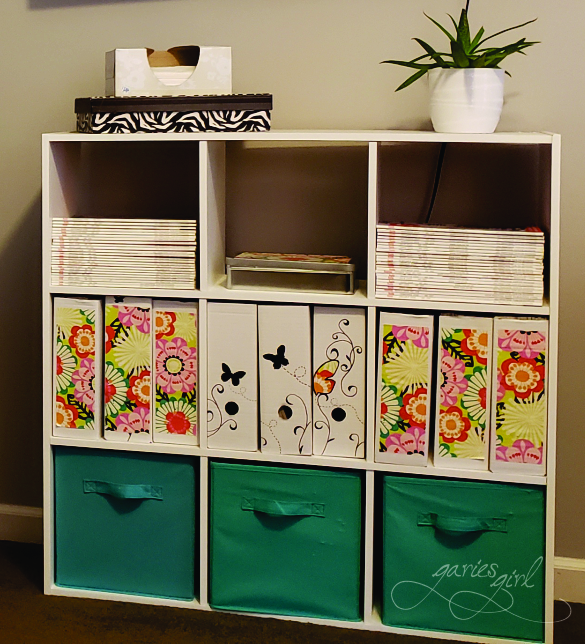 When it became time for these magazine holders to move into my office, I replaced the fabric cut-outs with some gift paper cutouts and immediately these blended in with my new décor.