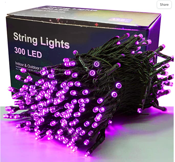 No Halloween is complete without some string lights. This set includes 300 purple LED lights and can be used inside or outside. String them over bushes, in trees or over any item you want to highlight inside. I will be adding mine to the entrance area of my front patio. You will get 98.5 feet of lights for $17.99.