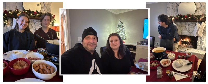 The kids made their way back home again for the holidays. We focused our time mostly on being together. We had our now annual Christmas Eve fondue in front of the fire, with a big Christmas Day meal the next day. We invited our niece, her husband, and their furbaby and prepared a gluten-free meal. Leg of lamb, fried potatoes, Pieter’s famous sweet potato, to name a few of the highlights. Sidney was in charge of a homemade caramel to go with our dessert of ice cream. She was also in charge of delicious Christmas cocktails.